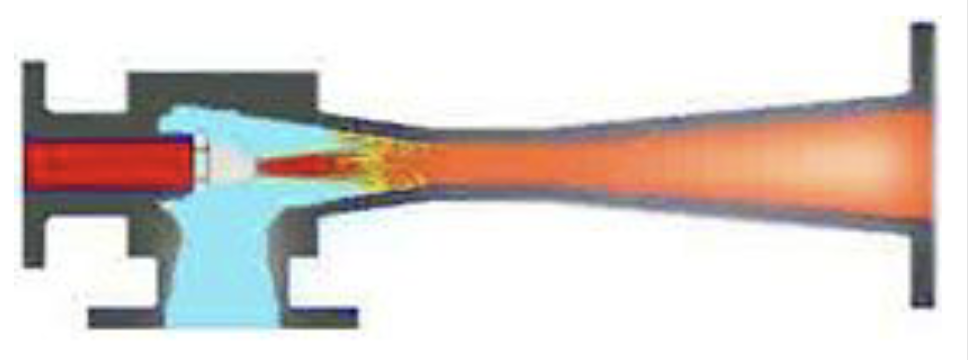 The motive steam with high pressure and low velocity is supplied in the steam chest which exits the steam nozzle at design suction pressure and supersonic velocity. (Where velocity of the steam up to Mach number 3.0 or 4.0 is achieved by Converging & diverging nozzle).