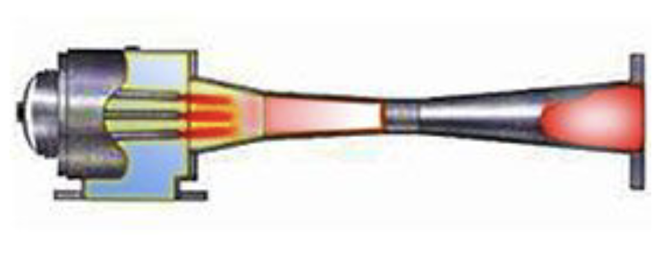 At some point in the throat of the diffuser, their combined flow attains the exact speed of the sound. A stationary, sonic-speed shock wave is formed there which gives a sharp rise in absolute pressure. The shock wave in the diffuser throat changes the velocity from supersonic to sub-sonic.